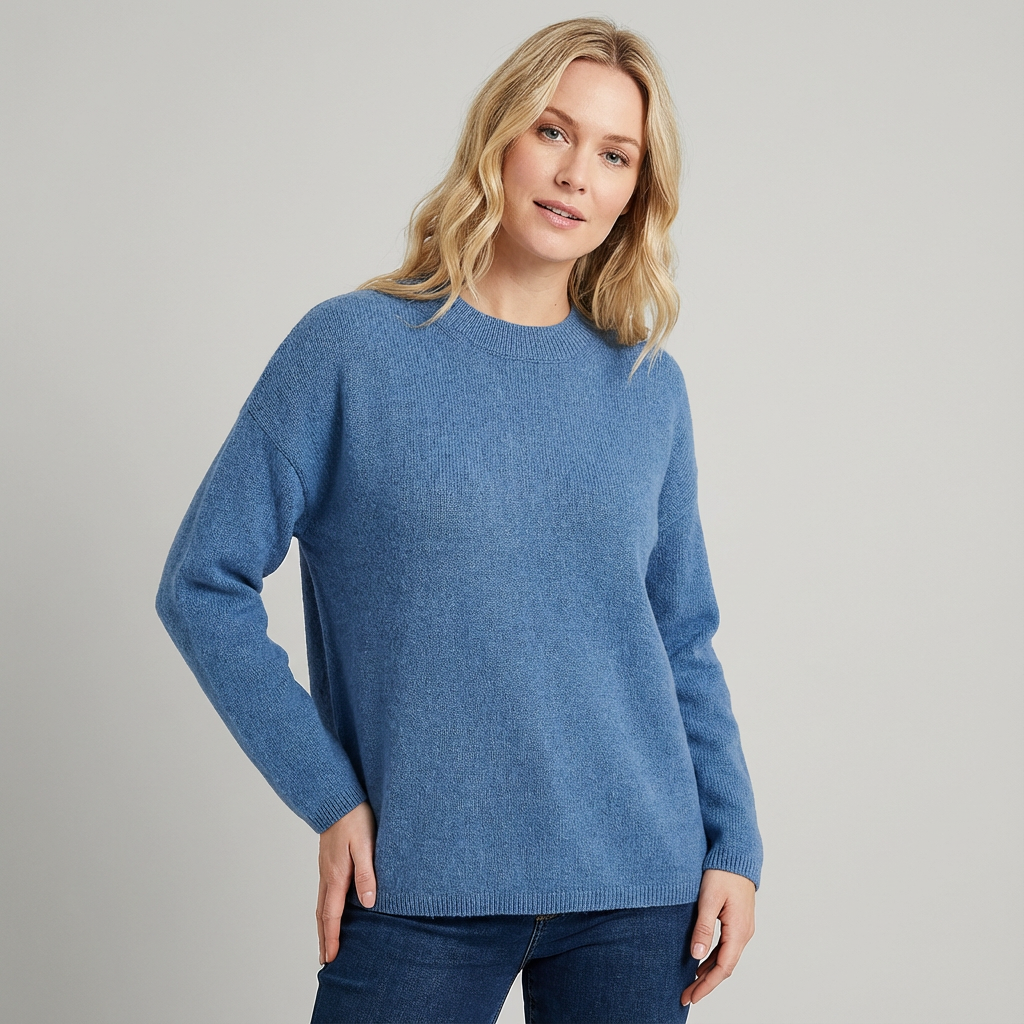 Jersey de punto de cuello redondo para mujer con tejido suave y corte holgado