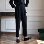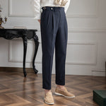 Pantalones de trabajo de cintura alta para hombre, plisados, largos hasta el tobillo, corte clásico