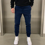 Pantalones cargo ajustados para hombre con cintura ajustable y múltiples bolsillos