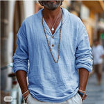 Camisa informal de manga larga para hombre con corte relajado y escote abotonado