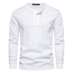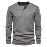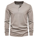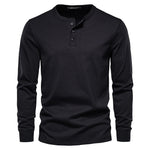 Camisa Henley clásica de manga larga para hombre con tapeta de tres botones