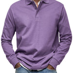 Polo de manga larga para hombre con cuello abotonado y dobladillo con puños