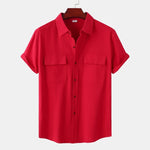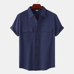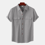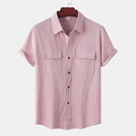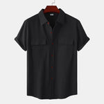 Camisa informal de manga corta para hombre con bolsillos delanteros y cierre de botones