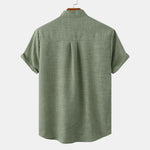 Esta camisa de manga corta para hombre presenta un cuello alto minimalista y líneas limpias, ideal para un estilo informal y elegante . Su cierre frontal abotonado y su bolsillo estructurado en el pecho ofrecen practicidad para el día a día sin renunciar a la sofisticación. Perfecta para días relajados en la oficina o salidas de fin de semana.