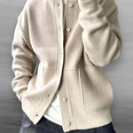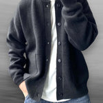 Cárdigan informal con botones, cuello bombardero y bolsillos para hombre