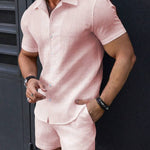 Conjunto de dos piezas de camisa abotonada y pantalones cortos para hombre, corte entallado