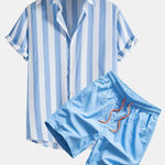 Conjunto de dos piezas de camisa a rayas con botones y shorts de baño para hombre