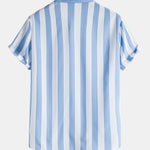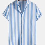 Este conjunto de dos piezas a rayas para hombre incluye una camisa clásica de manga corta con botones y shorts de baño con cordón a juego. Su diseño relajado es perfecto para relajarse junto a la piscina, en la playa o en salidas de verano . Un conjunto a juego para un estilo informal en climas cálidos.