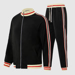Conjunto deportivo de dos piezas para hombre con chaqueta con cremallera y detalle de rayas