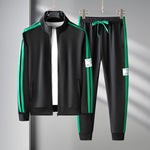 Conjunto de chándal de dos piezas con cremallera para hombre, chaqueta a rayas y pantalón de chándal