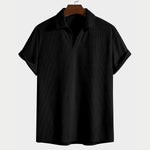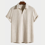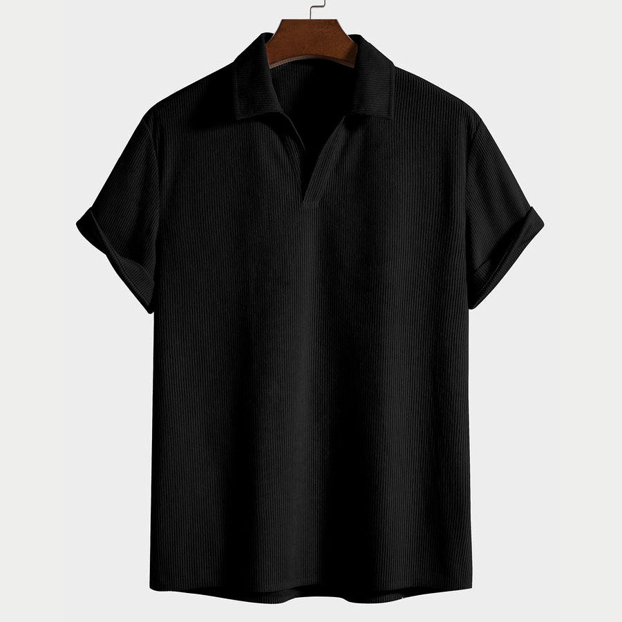 Este polo acanalado de cuello abierto está diseñado para hombres que aprecian la simplicidad con un toque moderno . Su suave textura acanalada y las mangas enrolladas le dan un toque relajado , mientras que el cuello abierto le aporta un estilo sobrio. Perfecto para días libres, reuniones informales o planes para el buen tiempo.