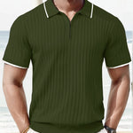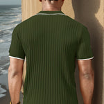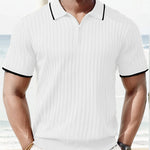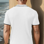 Polo de manga corta acanalado con cremallera y ribete en contraste para hombre