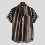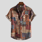 Camisa de manga corta abotonada para hombre con estampado geométrico étnico retro