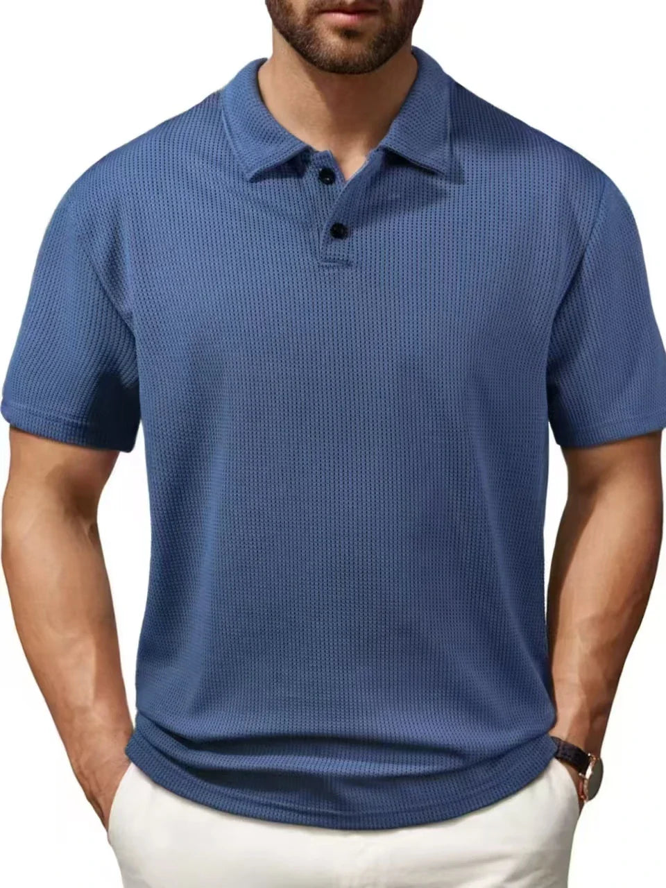 Polo de punto de manga corta para hombre con diseño texturizado transpirable