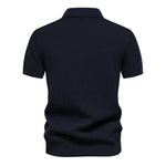 Polo de punto de manga corta para hombre con rayas en el pecho y cuello con cremallera