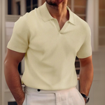 Este polo acanalado de manga corta para hombre presenta un elegante cuello en V , una elegante textura acanalada y un cómodo diseño de manga corta . Ideal para días informales , salidas nocturnas o entornos de oficina relajados , este polo ofrece estilo y comodidad desenfadados. Mejora tu vestuario diario con esta prenda esencial y versátil.