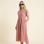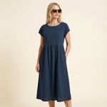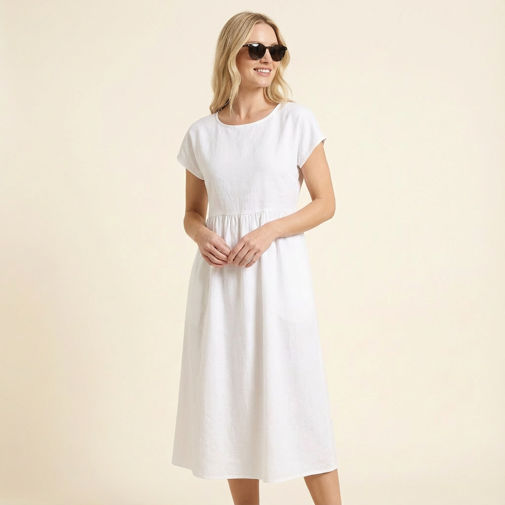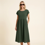 Vestido midi de verano para mujer con mangas cortas y silueta fluida