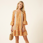 Adopta el estilo bohemio con un minivestido con hombros descubiertos y estampado étnico