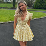 Este minivestido floral para mujer añade un toque encantador de inspiración vintage a tu armario. Diseñado con mangas abullonadas , un escote en V pronunciado y un favorecedor lazo frontal , es ideal para días cálidos y salidas informales. El corpiño ajustado y la falda acampanada crean una silueta equilibrada, femenina y fresca .