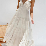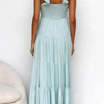 Este vestido largo con mangas con volantes presenta un suave escote en V y una falda fluida con capas que se mueve con gracia a cada paso. Su estructura ligera y su corte refinado lo hacen ideal para días informales, salidas relajadas o momentos especiales. Una prenda elegante y fácil de llevar que realzará tu armario con un encanto atemporal.
