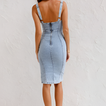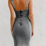 Este vestido midi ajustado para mujer está diseñado para realzar tu figura y ofrecerte un look elegante y seguro. Con cintura definida y una sutil abertura frontal , está diseñado para realzar la elegancia contemporánea a cada paso. Su corte sin mangas y su corpiño estructurado lo convierten en una prenda destacada para ocasiones informales y chic.