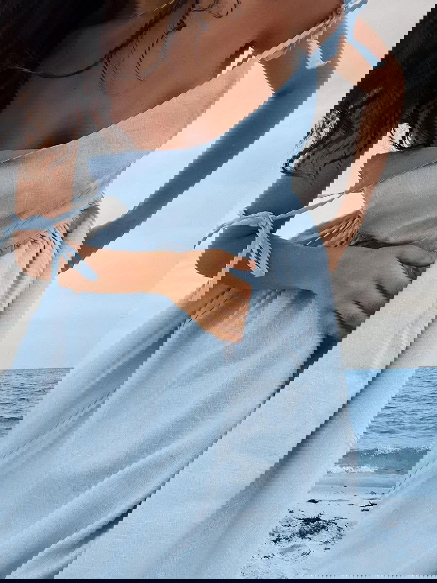 Vestido largo sin mangas para mujer con escote en V y espalda abierta