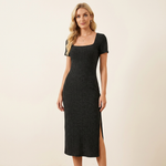 Luce elegante y cómoda con este vestido de punto con escote cuadrado para mujer , diseñado con un favorecedor escote cuadrado y un tejido suave y elástico que se adapta a tu figura en los puntos clave. La elegante abertura lateral favorece el movimiento, mientras que la textura acanalada le da un toque moderno. Perfecto tanto para ocasiones informales como formales, este vestido te garantiza un aspecto impecable de día y de noche.