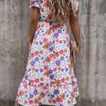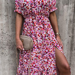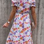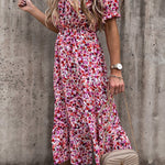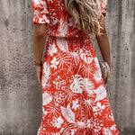 Este vestido con estampado tropical es perfecto para mujeres que buscan un estilo informal y cómodo para los días cálidos. Con cintura elástica y mangas cortas , ofrece un corte holgado que favorece la libertad de movimiento. La abertura le da un toque de estilo, ideal para cualquier ocasión, desde un día de fiesta hasta eventos informales.
