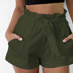 Pantalones cortos de cintura paperbag para mujer con cinturón y corte informal relajado