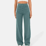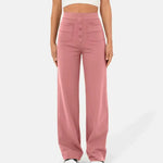 Consigue un look elegante y refinado con estos pantalones anchos de tiro alto para mujer , con elegantes botones y un corte holgado. Su tejido suave y fluido garantiza comodidad durante todo el día, mientras que la cintura alta crea una silueta favorecedora. Perfectos para el trabajo, salidas informales o looks de noche sofisticados.