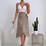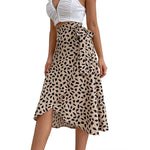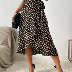 Falda midi cruzada estampada para mujer con cintura anudada y dobladillo asimétrico