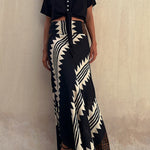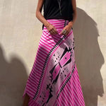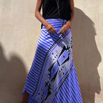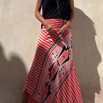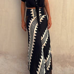 Falda larga de cintura alta con estampado tribal para mujer y dobladillo fluido