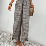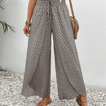 Estos pantalones anchos con estampado y cintura elástica para mujer ofrecen comodidad y estilo. Su corte holgado y su elegante estampado los hacen perfectos para días informales, salidas a la playa o vacaciones de verano, ofreciendo un look elegante y relajado para cualquier ocasión.