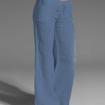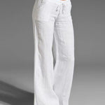 Pantalones anchos para mujer con cintura con cordón y corte relajado