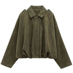 Chaqueta bomber corta para mujer con cuello de solapa y cremallera frontal