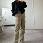 - Bolsillos con solapa: detalles funcionales que realzan el diseño.