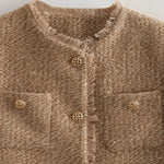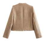 Chaqueta de tweed corta para mujer con mangas largas y elegante estilo abrigo corto