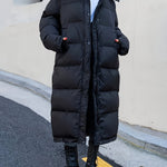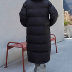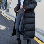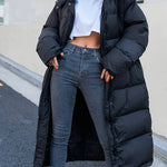 Chaqueta acolchada larga negra para mujer con capucha y diseño acolchado completo