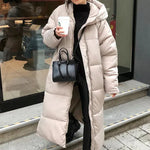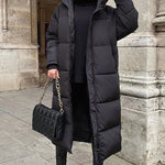 Abrigo acolchado largo para mujer con cuello alto y capucha