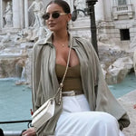 Esta chaqueta bomber holgada para mujer presenta mangas largas abullonadas y una silueta relajada para un look vibrante y vanguardista . Con cremallera frontal , es perfecta para combinar con prendas informales , lo que la convierte en una opción versátil tanto para la calle como para el día a día . Una prenda que combina comodidad y un estilo impactante.