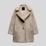 Este abrigo de invierno extragrande para mujer presenta un suave acabado similar al pelo , cuello con solapas de muesca y un solo botón frontal para combinarlo fácilmente con otras prendas en climas fríos. Diseñado con una silueta relajada, ofrece calidez para el día a día y una elegancia natural . Una opción perfecta para un abrigo de invierno acogedor y moderno .