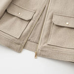 Chaqueta bomber de solapa corta para mujer con cremallera frontal y bolsillos con solapa