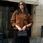 Esta chaqueta bomber urbana para mujer combina a la perfección estructura y estilo casual . Diseñada con cuello clásico , cierre frontal con botones a presión y bolsillos extragrandes con solapa , le da un toque funcional y moderno a tu estilo diario. Ya sea para una salida de fin de semana o para los días más fríos, esta chaqueta bomber para mujer le da un toque sofisticado a tu look.