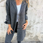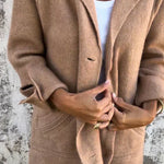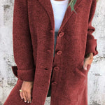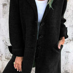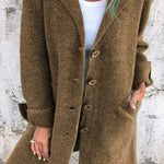 Este abrigo largo de lana para mujer con cuello de solapa combina un diseño clásico con la comodidad moderna . Su suave mezcla de materiales de alta calidad garantiza comodidad durante todo el día, mientras que su corte atemporal con tapeta de botones crea una silueta elegante. Gracias a su corte amplio , se puede llevar fácilmente sobre suéteres o blusas, perfecto para looks elegantes e informales.