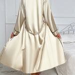 Este conjunto de pijama de dos piezas para mujer incluye una bata de manga larga y un vestido lencero a juego , diseñado para una combinación perfecta de elegancia y relajación. Ideal para relajarse o antes de dormir, este conjunto ofrece un look cómodo y sofisticado que realza tu rutina nocturna. Una opción versátil tanto para estar en casa como para ocasiones especiales.
