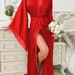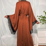 Bata tipo kimono larga de encaje para mujer con cinturón y mangas anchas