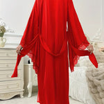 Esta bata larga tipo kimono de encaje para mujer presenta mangas anchas y sueltas , cinturón y delicados ribetes de encaje para un acabado elegante. Perfecta para mañanas de novias, bodas o tardes de relax en casa, combina un diseño elegante con la comodidad del día a día . Una bata versátil que añade sofisticación a cualquier armario.