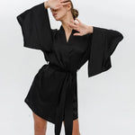 Bata tipo kimono corta para mujer con cinturón y mangas anchas