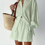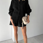 Conjunto de camisa abotonada y pantalones cortos para mujer