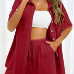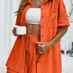 Este conjunto casual de dos piezas para mujer combina comodidad y minimalismo moderno con su top de manga corta abotonado y shorts con cordón . Ideal para relajarse, hacer recados o escapadas en verano, es tu prenda ideal para looks informales de día.